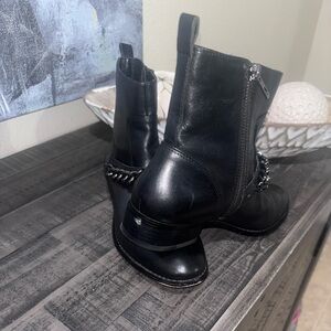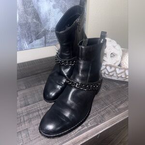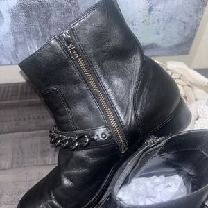 COACH ADELLA CALF LEATHER CHAIN WOMENS FLAT ANKLE BOOT SHOES sZ 7