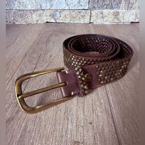 B.belt Zoe belt leather brown and gold studs in taupe