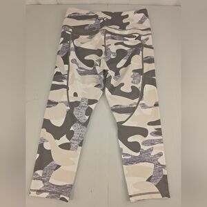 Zyia Active Women's Gray White Camo Pockets Cropped Leggings Size 12 F-0089