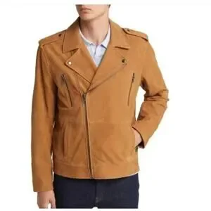 Open Edit Leather Suede Moto Biker Jacket Mens Size XL Camel Coat Spring Brown