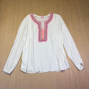 Lilly Pulitzer Dahle Tunic Top Embroidered Resort White Relaxed Fit Womens Small