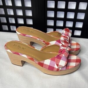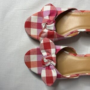 ❤️ J. Crew Factory red and pink plaid bow sandals