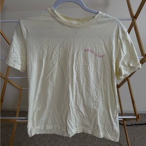 Soft butter yellow t-shirt with classic design. L size but better for S/M, runs small.