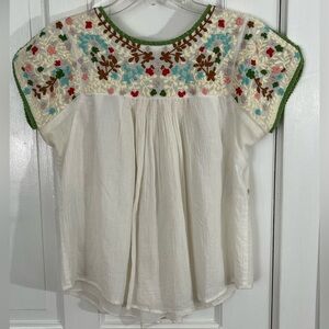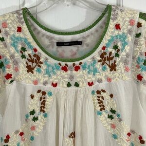 Hazel Anthropologie Boho Women’s Floral Embroidered Blouse Small Cottagecore