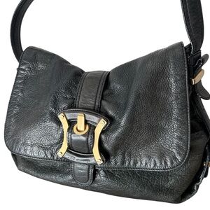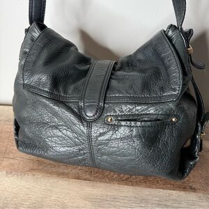 B. MAKOWSKY Black Leather Shoulder Bag Hobo Slouchy Chunky Magnetic Closure