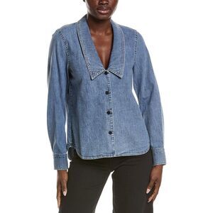 Frame Denim Womens Frame The Low Collar Shirt, Blue