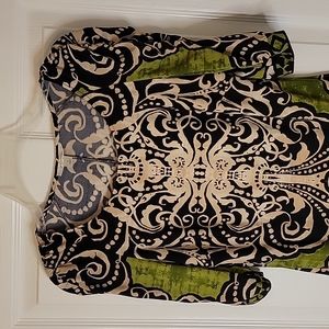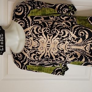 Dress Barn Gathered Sleeve Dress Shift 8 Black Tan Green