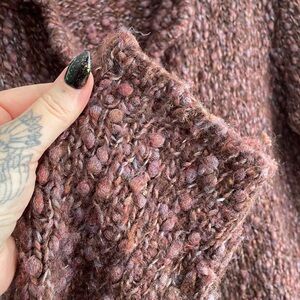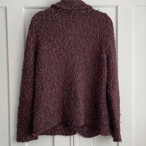 ALEXANDRA BARTLETT Burgundy Chunky Knit Teddy Jacket Sweater Large Shawl Collar