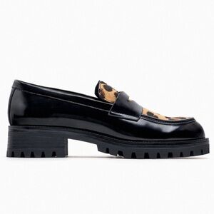 New! zara SZ 39/8, black combo cheetah loafers.
