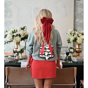 Style it with a red skirt, denim, or leggings for the cutest holiday look! Looks great as an oversized crewneck!