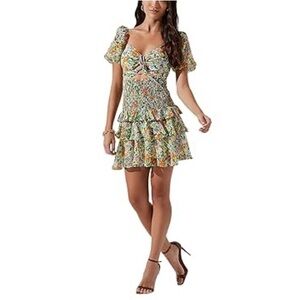 Chic floral dress with a playful ruffle hem. Ideal for prom or special events. Features a vibrant multicolor design.