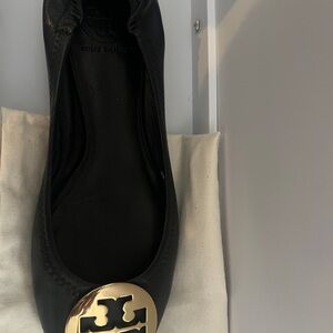 Tory Burch Black Flats with Gold Emblem