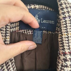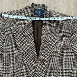 Vintage Ralph Lauren Silk Wool Blazer Size 12 Brown Plaid Academia