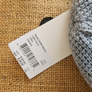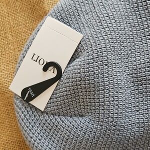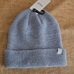 Stylish light blue knit beanie by Vuori. Perfect for chilly days.