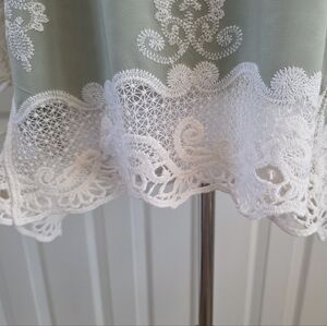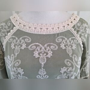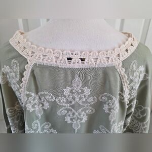 Democracy Sage Green Embroidered Peasant Top White Lace Boho Blouse - 1X EUC