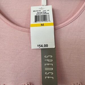 Chic pink blouse with lace accents. Flowy and stylish design, bell sleeves and crew neck. Size Medium NWT