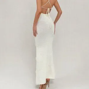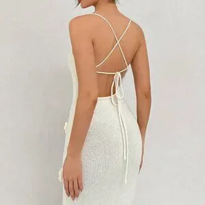 Beige Elegant Women's Backless Knit Dress With Tailored Flowers