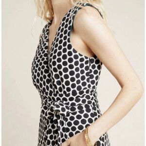 EUC Anthropologie Eva Franco Sleeveless Jumpsuit Size Polka Dot Black White!!