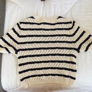 Aerie Cream and Navy Striped shrunken crop Sweater