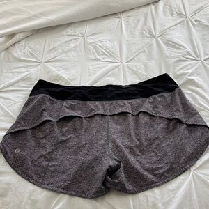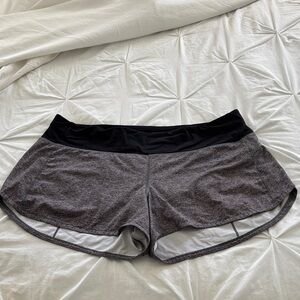 Speed up 4 in inseam. Comfortable gray and black athletic shorts. Perfect for workouts or casual wear.