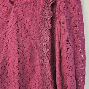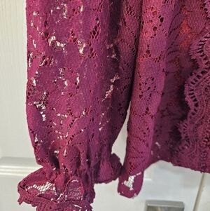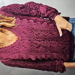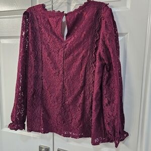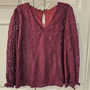 New Lacey Long Sleeved V-Neck Lined Cottagecore Blouse Maroon XL