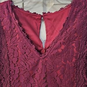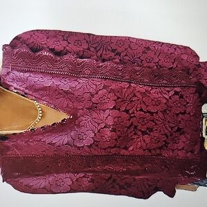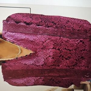This elegant lace Crochet V-neck top in a rich burgundy color is perfect for any occasion. Its intricate design adds a touch of sophistication to your wardrobe.