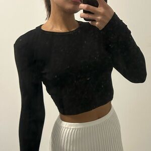 Cropped long sleeve black top