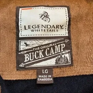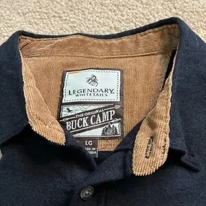 Men’s Legendary White Tails The Original Buck Camp Black Flannel with Tan Cord Cuffs and Neck- Sz L