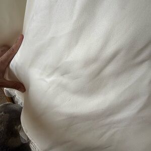 Wore to my bachelorette has very light stains on it. It may need to be taken to the dry cleaners just a straightened out unless you have a steamer. Other than that I’m very good condition. Maybe be worn for three hours. Size medium with plus size cups