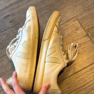 Classic Veja sneakers with a minimalist design. Cream accents add subtle style. Perfect for casual outings.
