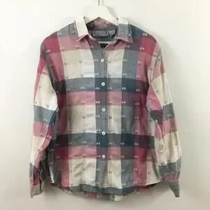 Jane Ashley Women’s Plaid Button Down Long Sleeve Shirt Size S