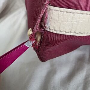 These areas were glued and colored a bit but it has not held. Honestly if someone knows how to sew or take to cobbler the it could be sewn from the inside. I am not crafty when it comes to seams or sewing. The inside lining has no rips or tears.