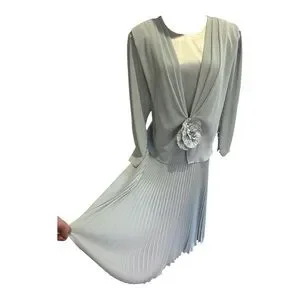 80s URSULA OF SWITZERLAND BLUE CHIFFON & SATIN DRESS W MICRO PLEAT SKIRT SZ 14W