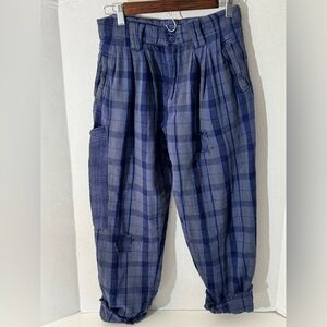 Free People - Stylish blue plaid women's pants perfect for casual outings. Comfortable and trendy design. Size 4