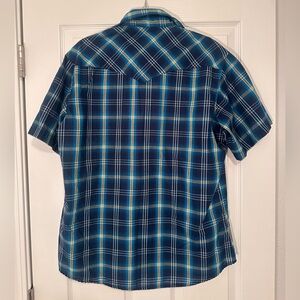 Men’s Wrangler Western Men's Large Blue and Yellow Plaid Pearl Button Up Top