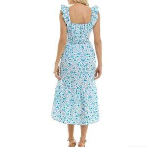 Draper James Flutter Strap Square Neck Sun Dress Blue Paisley Large Cotton Midi