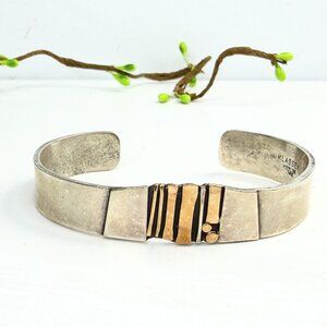 Vintage Klassen Handcrafted Sterling 14K Gold Cuff Bracelet 6.5" JR1399
