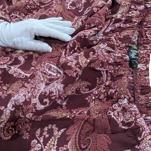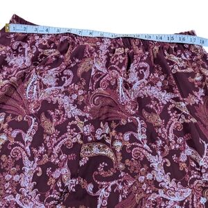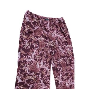 Jay Lee XL Paisley Wide Leg Palazzo Pants Boho Festival 70s Maroon Cream Stretch