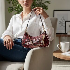 Von Dutch Red Leopard Print Shoulder Bag – Statement Y2K Purse