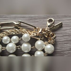 Multi-strand faux pearl and gold chain necklace by WHITE HOUSE BLACK MARKET.