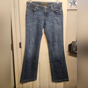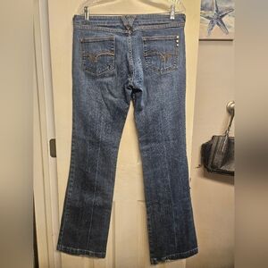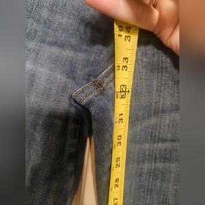 Used from a smoke free home womens size 30 miss me Erica bootcut jeans. Mid rise. Measurements in photos. No holes or stains, ends of legs on back side have signs of wear from hitting the ground. No stains or holes.