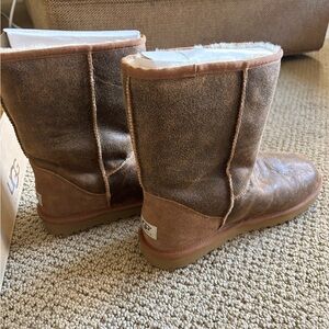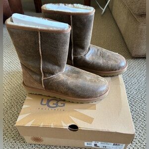 Stylish UGG boots for men. Brown exterior with cozy cream lining. Perfect for warmth and comfort.