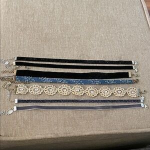 Elegant choker set by Charlotte Russe. Includes black velvet and gold lace designs. Perfect for any occasion.