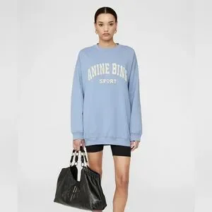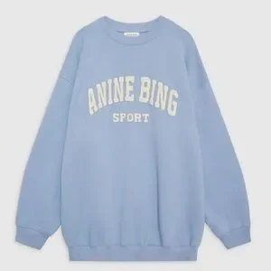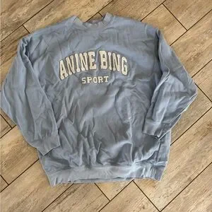 Cozy blue sweatshirt. Features cream Anine Bing Sport logo. Perfect for casual wear.