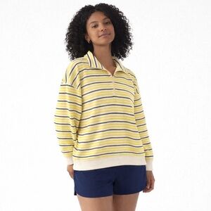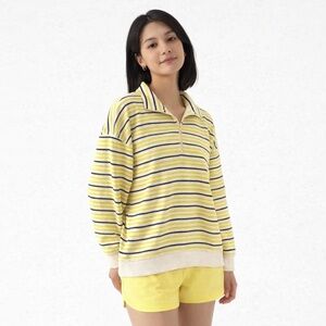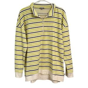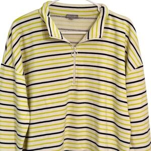 T by Talbots Stripe Classic French Terry Half Zip Pullover Sweatshirt L