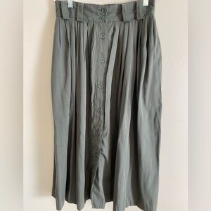 Vintage Olive Green Button-Down Pleated Maxi/Midi Skirt Size 10 Made in USA