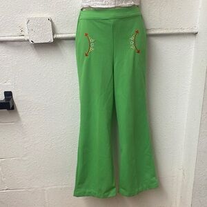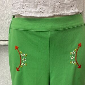 Vintage 70s - Green Flared Pants with Embroidered Detail