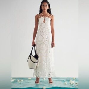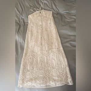 Cult gaia Everly dress. Features intricate patterns. Strappy neckline and back design, ankle length. Can be worn with the included slip, or not. Worn once.