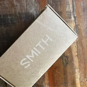 Ski/snowboarding SMITH goggles featuring a white frame and multicolor lenses. Perfect for winter sports.