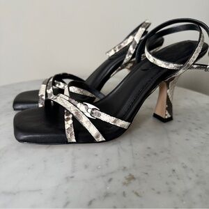 Step into modern luxury with these stunning Coach sculpted sandals. Featuring a high-impact snake-embossed leather in a versatile neutral palette, these heels are defined by the iconic "Sculpted C" pewter-toned hardware on the vamp. The sophisticated kitten heel and trendy square toe make these the perfect balance of high-fashion aesthetic and all-day comfort.